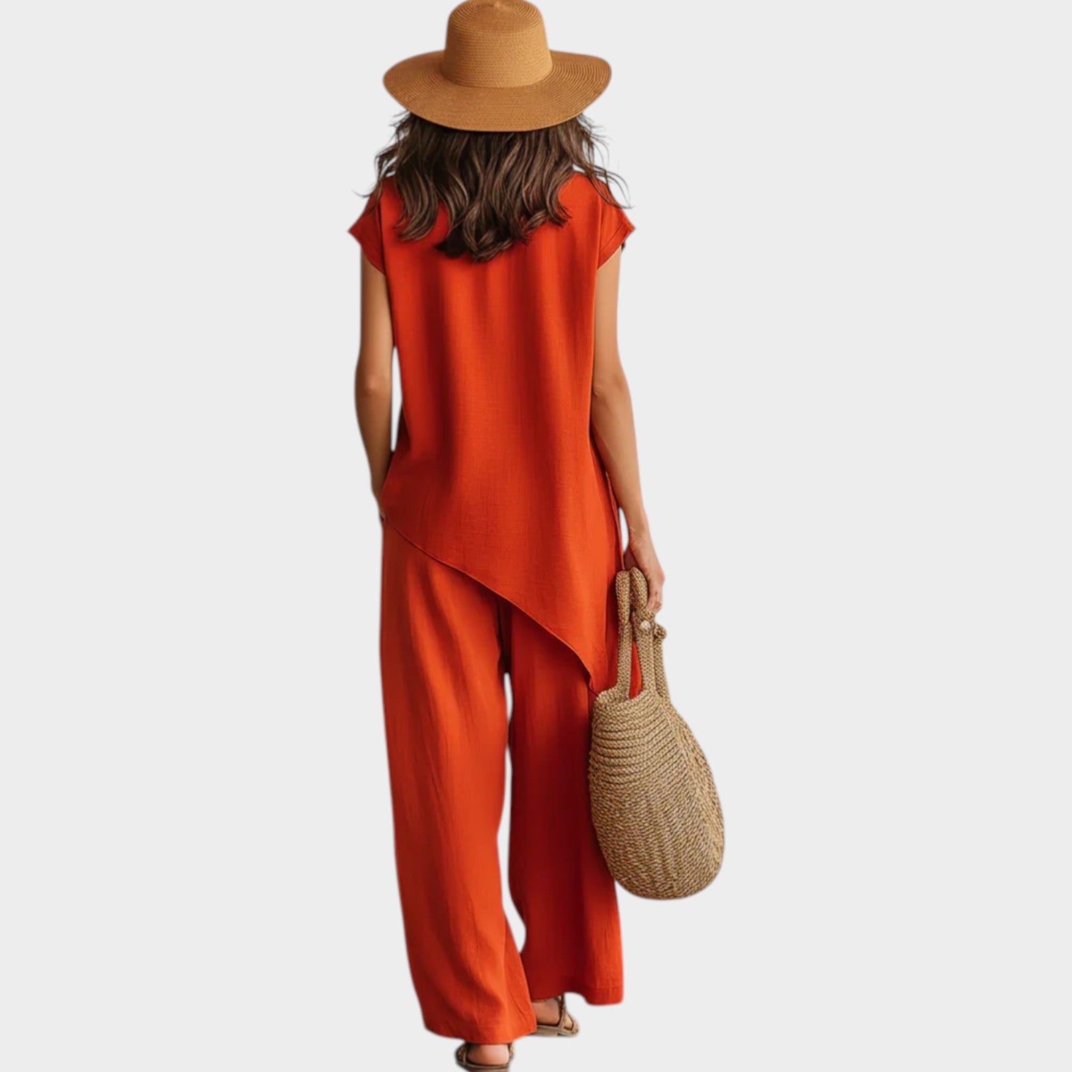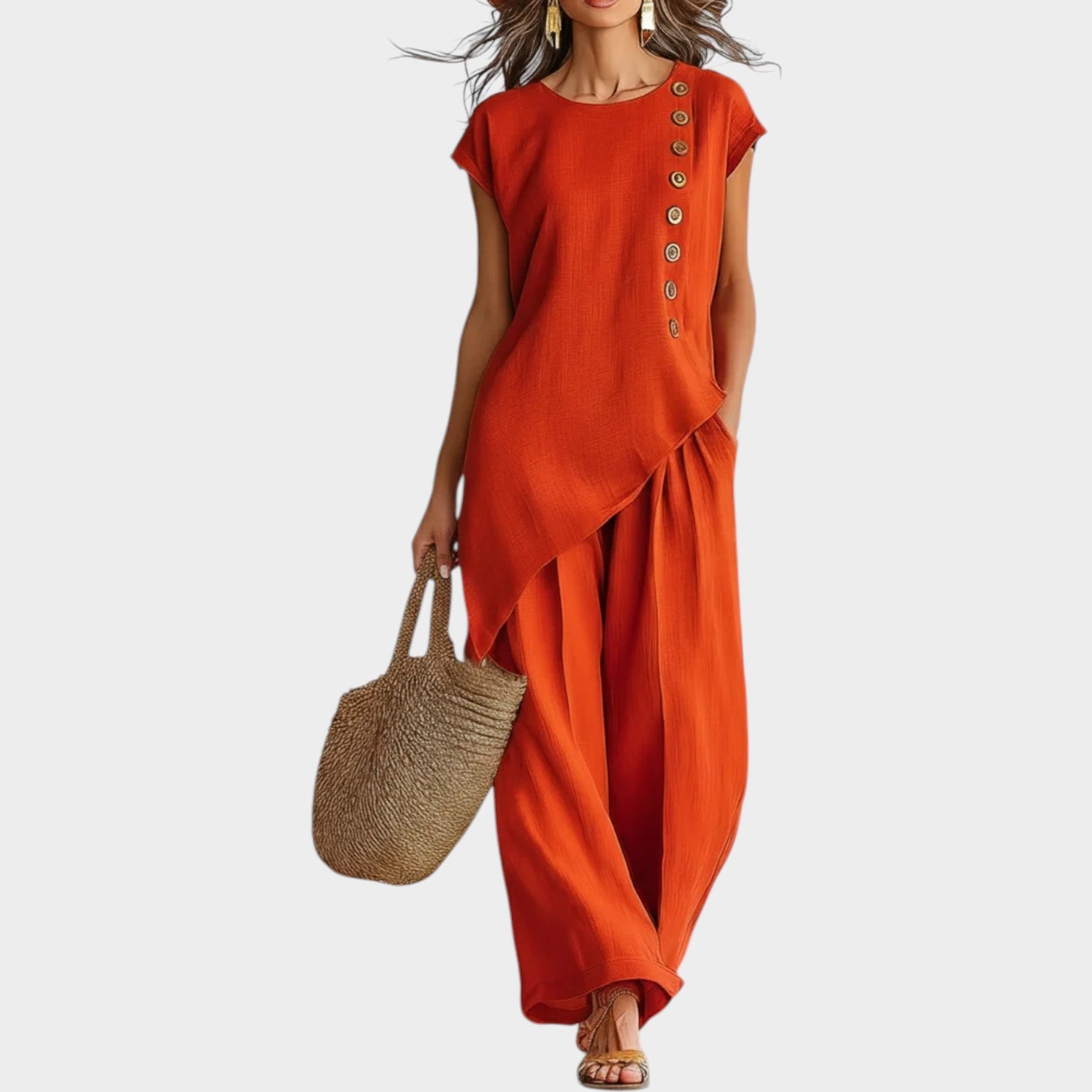 New Arrivals🔥 Stylish Cozy Zipper Shirt & Wide-Leg Pants Linen Cotton Two-Piece Set