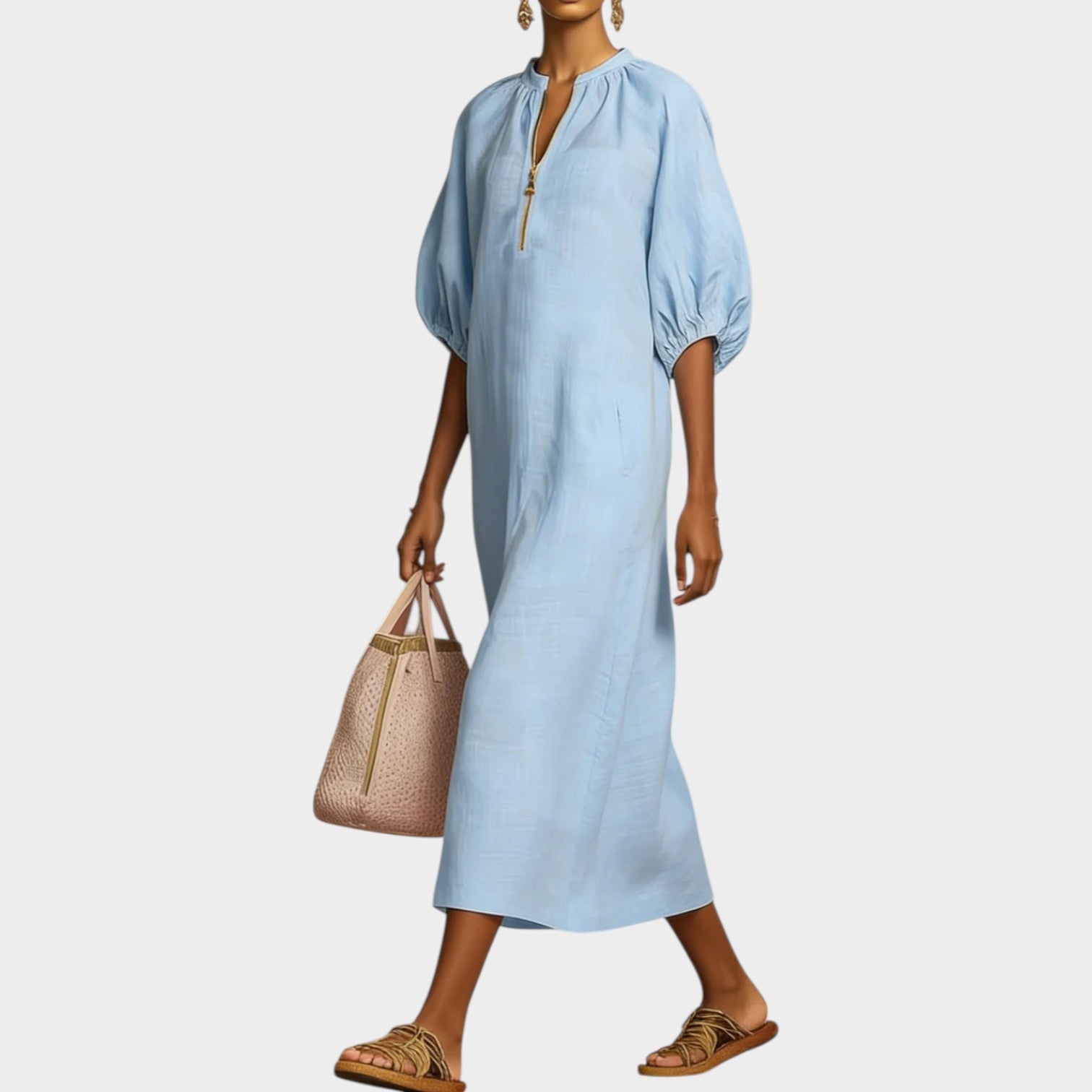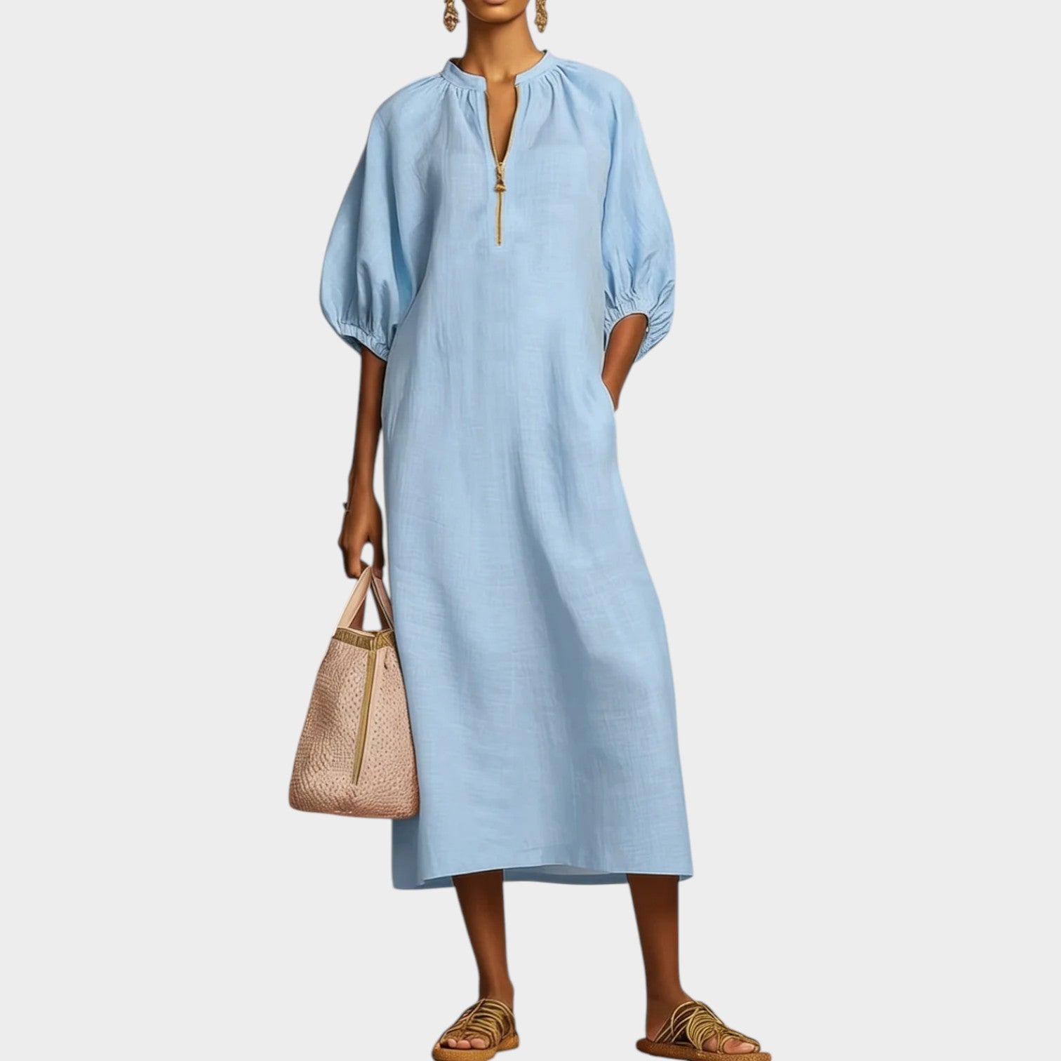 Women's Solid Color Collared Sleeveless Casual Loose Cotton Linen Dress