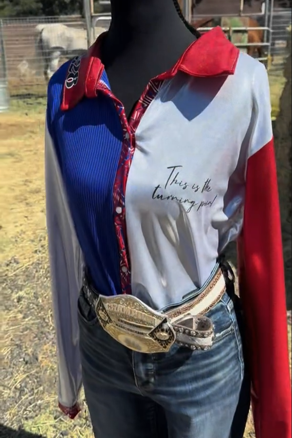 Blue With Red And White Americana Lightweight Stretch Jersey Rodeo Shirt