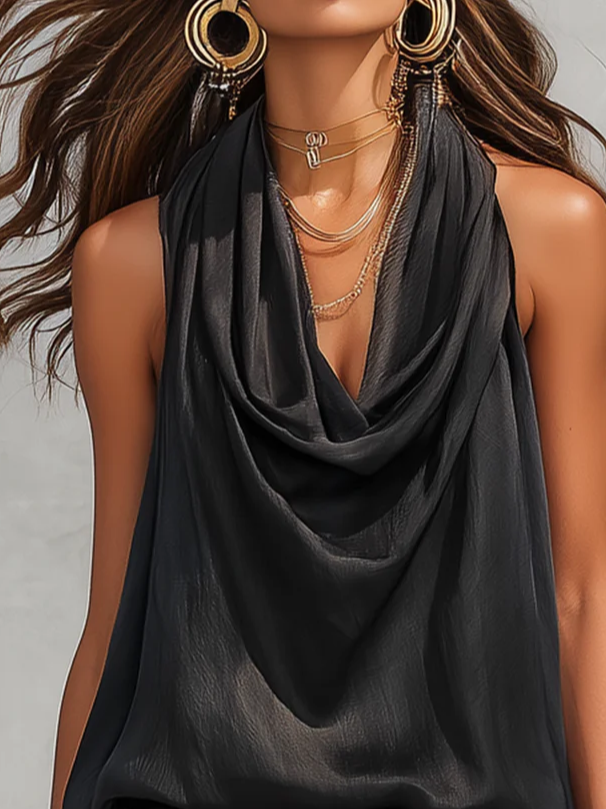 Cotton Vacation Plain Cowl Neck Tank Top