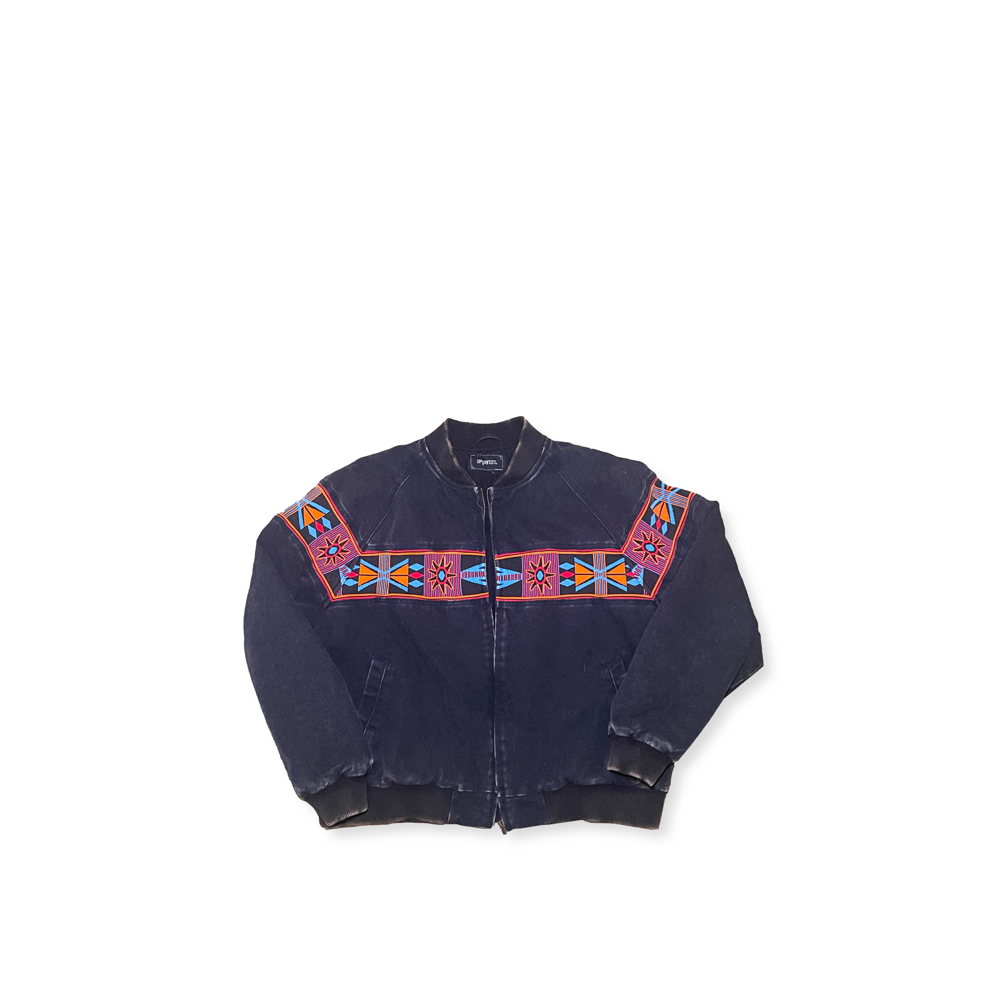 Introducing our western bomber jacket, a perfect blend of modern flair and vintage charm. Crafted with meticulous attention to detail, this jacket boasts a unique wash effect that adds a touch of retro authenticity. The jacquard detailing elevates the design, featuring intricate patterns that catch the eye and showcase superior craftsmanship. This bomber jacket not only exudes timeless style but also offers a high level of comfort, making it a versatile and must-have addition to your wardrobe. Embrace the fusion of classic aesthetics and western fashion with this exceptional piece.
