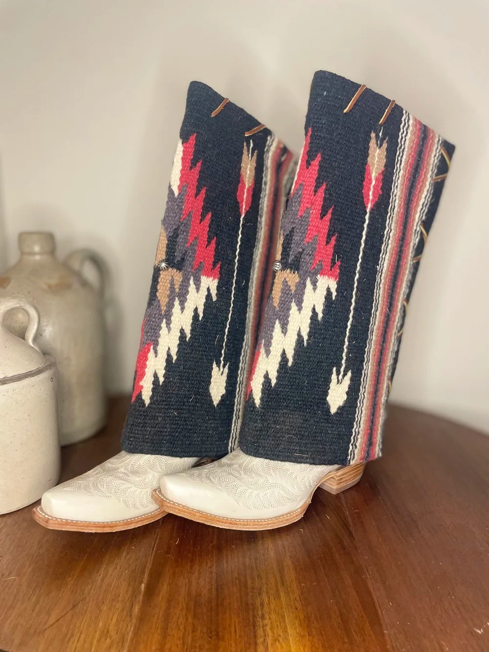 Embrace bold Western style with these Aztec print fringe boot cuffs, designed to transform any pair of boots into a statement piece. Perfect for layering over cowboy boots or ankle boots, they add instant rustic charm to denim shorts, maxi dresses, or Western-inspired skirts. Whether you’re pairing them with a denim mini skirt and a wide-brim cowboy hat for a full Western look or adding a touch of flair to a casual outfit, these boot cuffs blend comfort and style seamlessly. They’re a versatile accessory that elevates your wardrobe with authentic Western spirit, making them a must-have for any cowgirl enthusiast. Measures ~Height: 15" SPU:ACCJ25110723