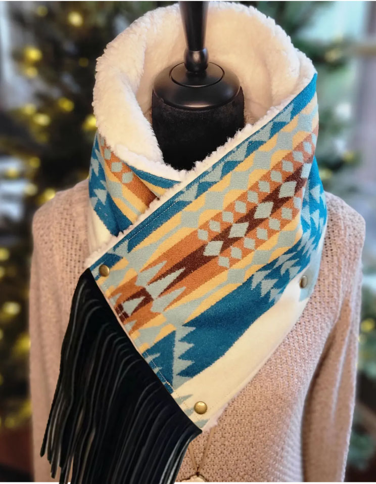 This women’s cowl makes the perfect western accessory for equestrians and outdoorsy women who love southwestern style and are looking for an alternative to a traditional scarf or wild rag, without the bulk.